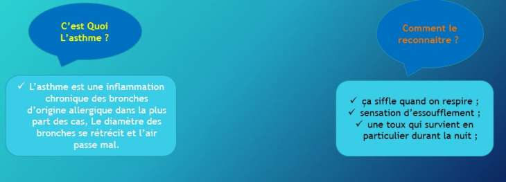 Qui dit rentrée des classes, dit aussi le retour des infections automno-hivernales. Ces infections sont surtout d’origine virale et peuvent favoriser l’apparition de crises ou d’exacerbations chez l’enfant et l’adolescent asthmatique;