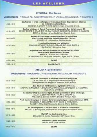 Les 2èmes journées Internationales de l'Ethique Médicale, organisées par l'OHRES (Observatoire du Handicap, de la Réadaptation et de l'Ethique en Santé) et le MPR (le Service de médecine Physique et de Réadaptation fonctionnelle de CHU Oran), sous thématique: La Douleur, se tiendront les 25 et 26 Novembre 2017 à l'hôtel Liberté à Oran.