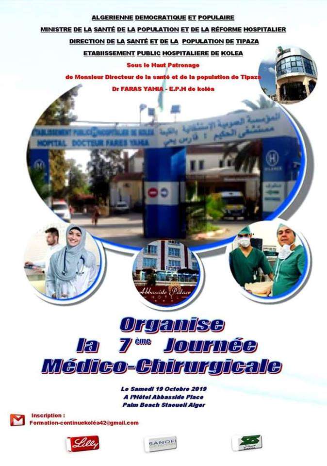 La 7éme journée Médico-chirurgicale aura lieu le 19 octobre, à l’Hôtel abbassides, palace palm beach, staoueli Alger.