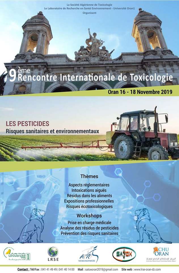 9ème Rencontre Internationale de la toxicologie- Le 16 au 18 Novembre 2019 à Oran