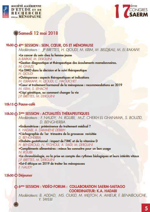 La Société Algérienne d'Etudes et de Recherches sur la Ménopause tient son :