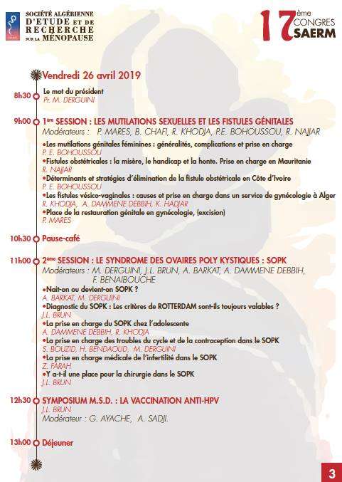 17ème congrès de la SAERM - 26 au 27 Avril 2019 à Alger