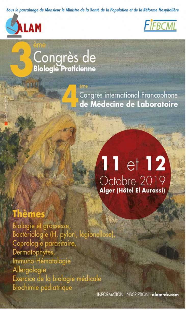 3ème Congrès de Biologie Praticienne et 4ème congrès international Francophone de Médecine de Laboratoire-11/10/2019 au 12/10/2019 - Alger, à l’hôtel El Aurassi