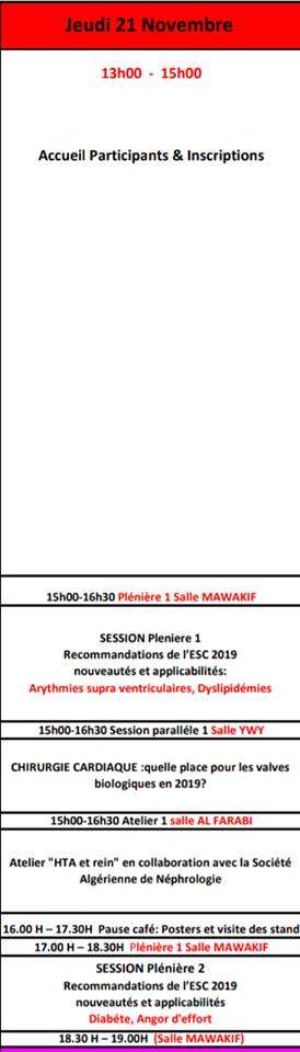 Congrès international sur les facteurs de risques cardiovasculaire et leurs impacts de la CISAC - 21 au 23 novembre 2019 a lhôtel el Aurassi, Alger