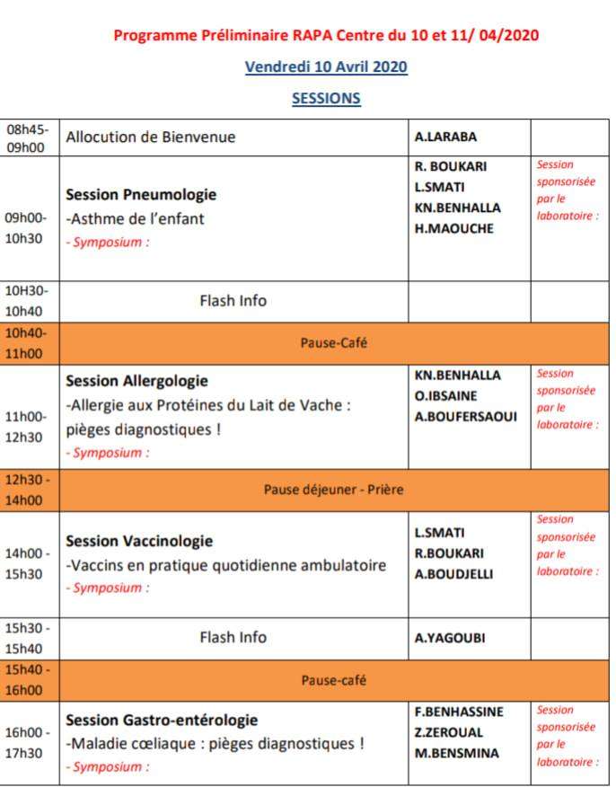 Premières rencontres Algérienne de Pédiatrie Ambulatoire Rapa-10 et 11 avril 2020-CIC-