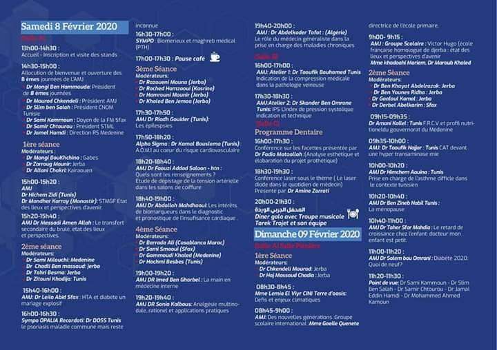 Les 8 èmes Journées Médicales de l’AMJ- le 8 et 9 février 2020- Djerba