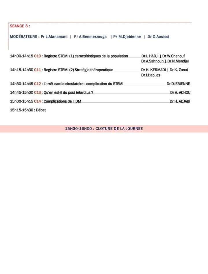 Journée de cardiologie : Le STEMI dans tous ses états - 28 févrie 2020 à Annaba