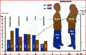Au cours des siècles, l’amélioration des conditions socio-économiques et d’hygiène, le développement des sciences (dont la médecine et les sciences de la santé en général), l’espérance de vie de l’homme (ou de la femme bien sûr) a augmenté et l’appellation de personne âgée est passée de 50 à 60 puis à 70 ans. Dans les pays développés, les femmes vivent en moyenne de 6 à 8 ans de plus que les hommes. Cependant, l'espérance de vie des femmes varie sensiblement selon le niveau de développement des pays, allant d'un peu plus de 50 ans dans les pays les moins avancés à plus de 60 ou 70 ans dans les pays qui connaissent un développement économique rapide. En ce début de 21èmesiècle, les personnes âgées sont environ 600 millions sur la planète, soit trois fois plus qu’il y a cinquante ans. Pendant les 25 ans qui viennent, les plus vieux d’entre nous devraient continuer d’augmenter à un rythme beaucoup plus rapide que les autres groupes d’âge. En Algérie, l’espérance de vie à la naissance s’est considérablement accrue depuis l’indépendance du pays. Elle est passée de moins de 50 ans en 1962 à 74 ans pour les hommes et 76 ans pour les femmes, en 2006. L’espérance de vie en bonne santé ou espérance de vie sans incapacité est plus difficilement mesurable car elle se heurte à divers écueils dont la notion d’incapacité elle-même.