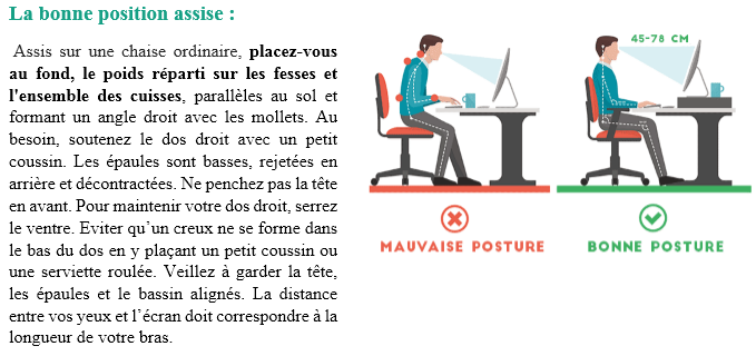 Au quotidien, les gestes, les efforts physiques qu’on exerce ou tout simplement une certaine posture, peuvent agresser notre colonne vertébrale et nous génèrent du mal au dos, car les maux viennent d’une pression sur quelque vertèbres, alors qu’à l’état normal, elle est réparties entre les articulations des 33 vertèbres et muscles détendus. Soulager ses maux commence tout d’abord par la correction de sa posture et d’en adopter une plus saine.